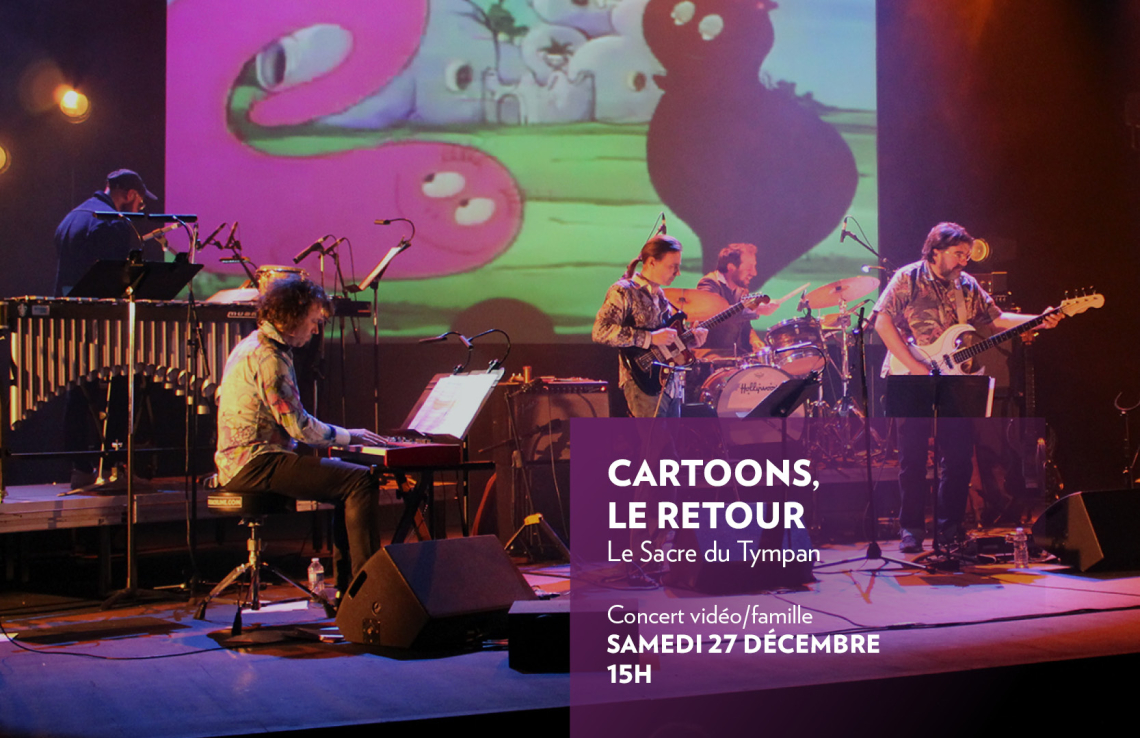 Princesse Mononoké rencontrant Les Barbapapa, Les Fous du Volants poursuivis par Batman ou encore Supermario télescopant Le Livre de la Jungle, Le Sacre du Tympan revisite plusieurs décennies de génériques, connus souvent, oubliés parfois, mais toujours ancrés dans la mémoire collective. Les concerts seront l’occasion de faire découvrir aux jeunes de 7 à 107 ans une large palette de timbres et d’objets sonores à travers des arrangements jubilatoires écrits pour l’occasion par Fred Pallem.